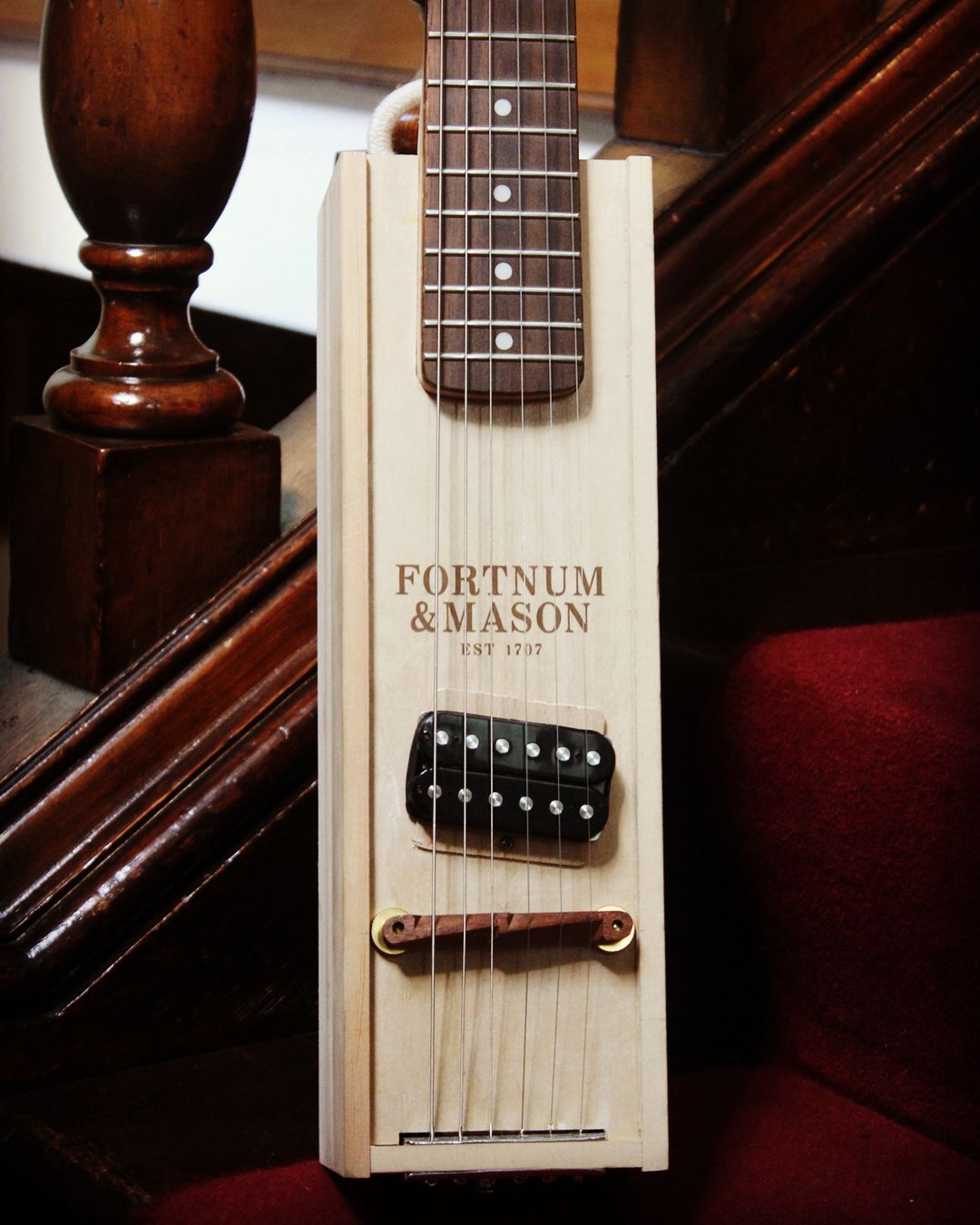 This Creative Environmentally Conscious Musician Has Come Up With A Very Impressive Way To Make Re-cyclin’ A Little More Rock n Roll. He’s Used A Wooden Fortnum & Mason Presentation Wine Box To Build A Stylish Modern Day, Re-Shaped Ukelele. George Fornby Would Be Proud!