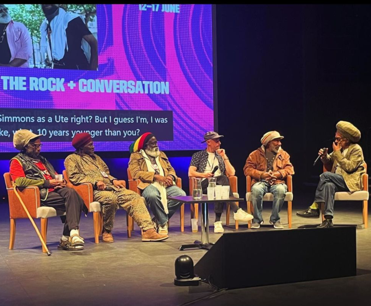PhotoVeryEnd of Page, Bottom Lefthand Column: Don Letts Hosts The Q & A Session After The Film Premiere Hosted By The Sheffield Crucible Theatre. Part of Sheffield Doc Fest. Gichie, Warmington, Arkk, Winston Reedy (Former Lead Singer) And Dunn Are Seated On Stage.