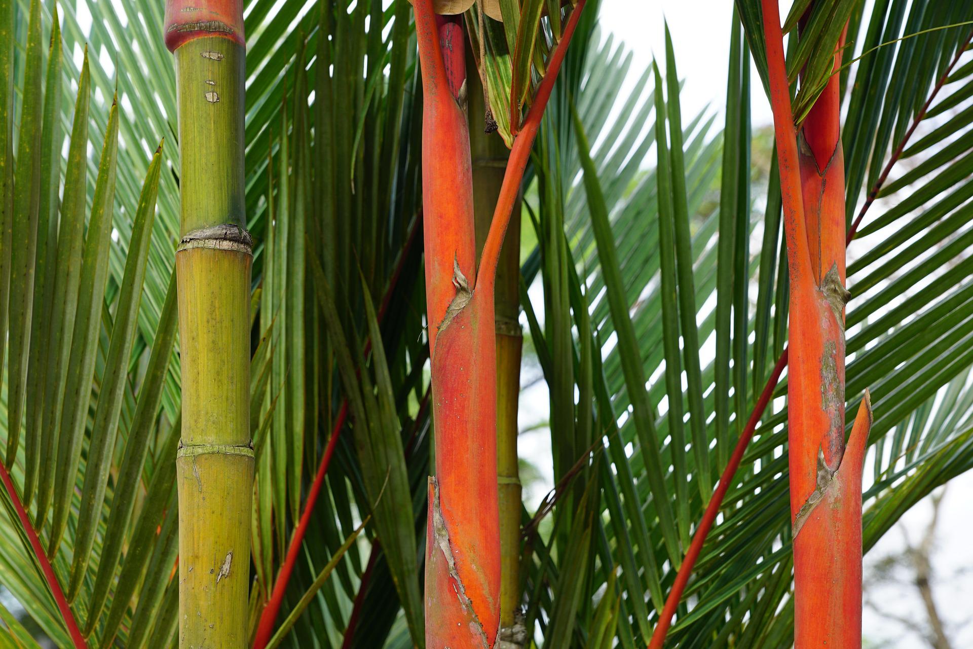 Tropical Looking Planting Can Add Different Texture, Height & Colour To A Garden. Here An Example of The Red Palm Tree Plant